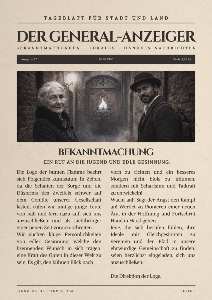 Die Welt von Utopia ist reich an vielfältigen Persönlichkeiten. Hier sind drei Beispielcharaktere, die Dir als Inspiration für Deine eigene Figur dienen können: